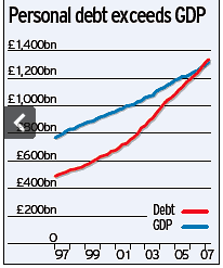 I just read two stories from the end of 2007 just before the start of the financial crisis. The Torygraph like a number of other newspapers ran a story pointing out that personal debt for the first time exceeded GDP.
