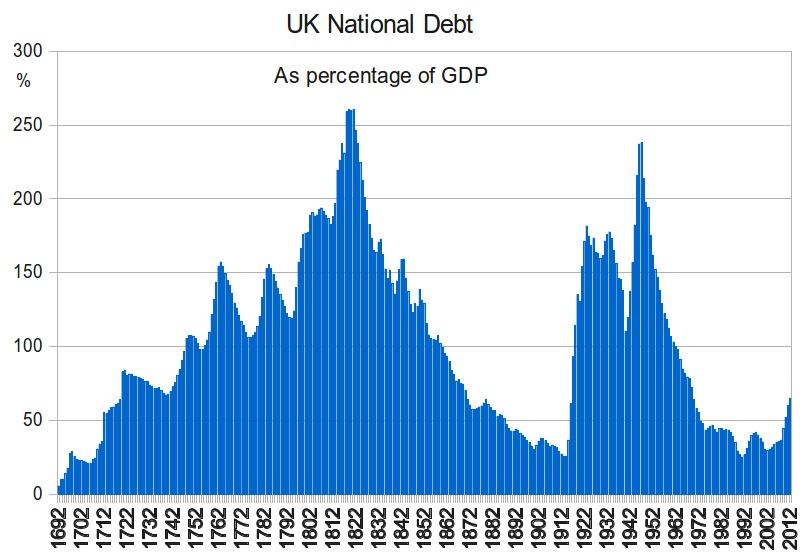 What many people don’t seem to realise, and what the Yes campaign should have hammered home, is that austerity has failed; that the national debt has continued to rise partly because the government withdrew so much money from the economy, shrinking demand. And we’ve mostly bought the lie that the national debt is at historically high levels. Actually it’s about 80% of GDP, much lower than throughout most of history and not particularly large by current global standards. Debt was much higher in the 1930s when Keynes urged governments to spend their way out of recession. Scotland has an opportunity to do things differently to Westminster.